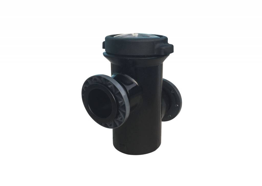 Cam Takviyeli Polyesterden mamul gövde, pompa ön filtresi. Plastik ön filtre sepeti, şeffaf akrilik kapak, kayar flanşlı.